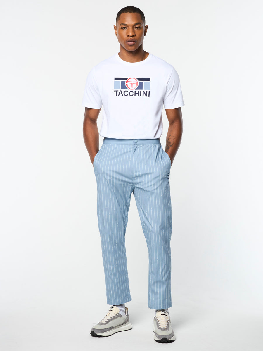 Inspired by Roman columns—a nod to Sergio Tacchini's Italian heritage.The Colonna Pant is crafted from luxurious stretch cotton poplin featuring an all-over Roman column pinstripe print for a casual look with a touch of elegance. Topped with a snap-button waist with elastic at the rear for a comfortable fit, these elevated pants are lightweight and breathable with a subtle stretch—perfect for travel and warmer weather.Pair with the Colonna Jacket for the full fit. (Sold separately)