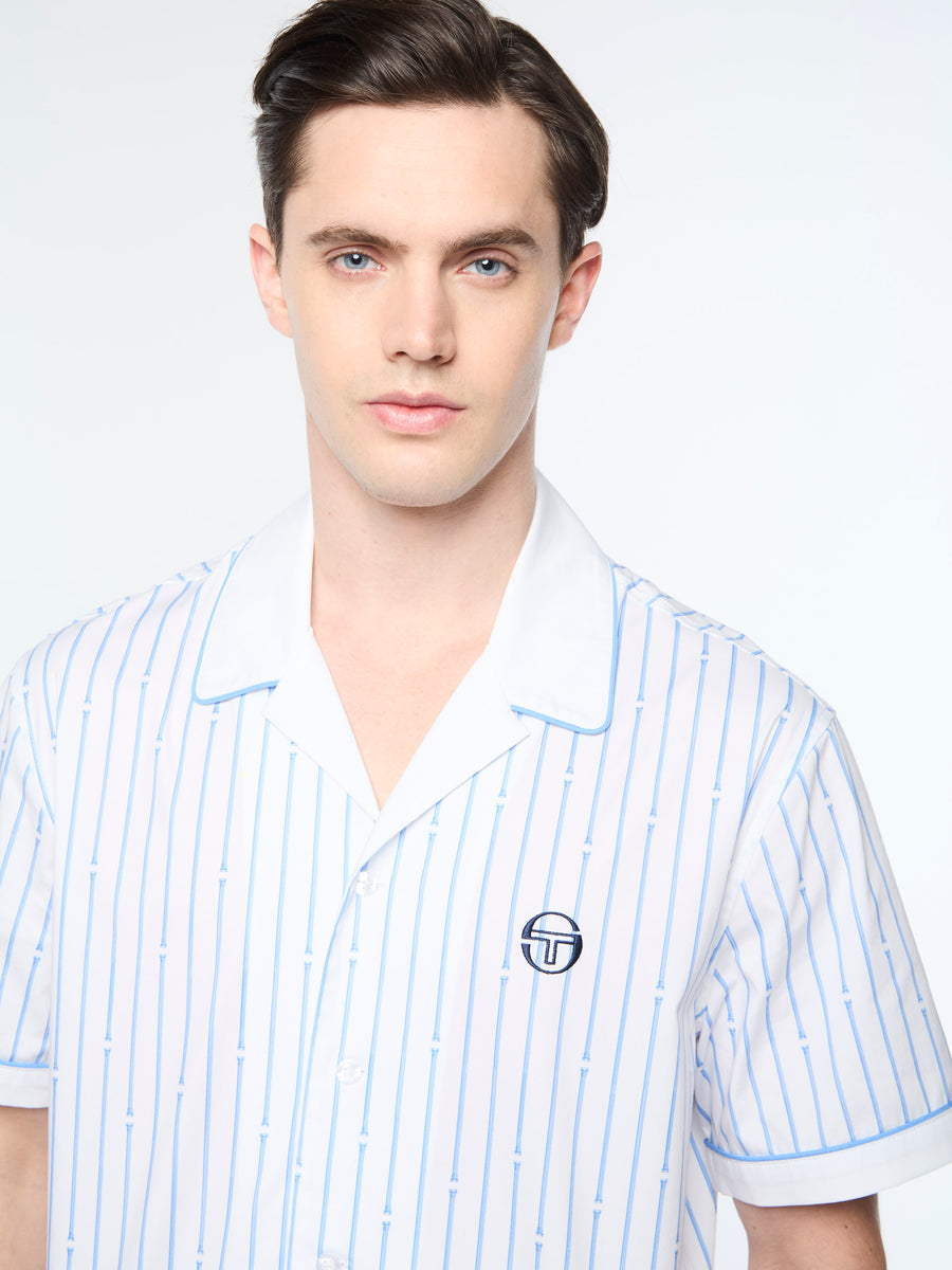 Inspired by Roman columns—a nod to Sergio Tacchini's Italian heritage.The Colonna Cabana Shirt is crafted from luxurious stretch cotton poplin featuring an all-over Roman column pinstripe print for a casual look with a touch of elegance. Topped with a laidback camp collar, this resort-ready button up is lightweight and breathable with a subtle stretch making it perfect for travel and warmer weather.Pair with the Colonna Cabana Short for the full fit. (Sold separately)