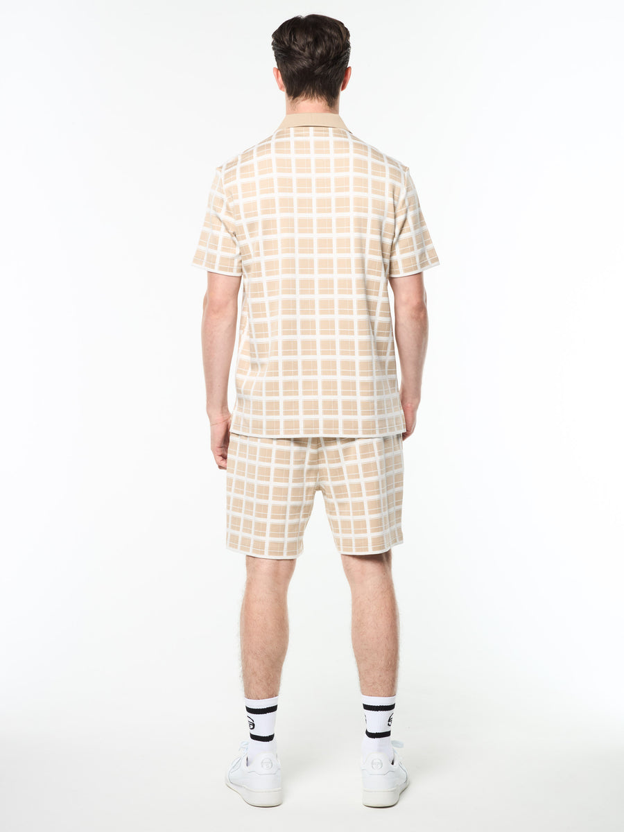A fresh spin on a long-time Tacchini classic. The Damarindo Check Polo features an all-over custom jacquard check pattern derived from our iconic Damarindo double stripe for a breezy, youthful vibe. Topped with a solid rib-knit collar for elevated style and comfort, this premium polo keeps you classy both on and off the court.