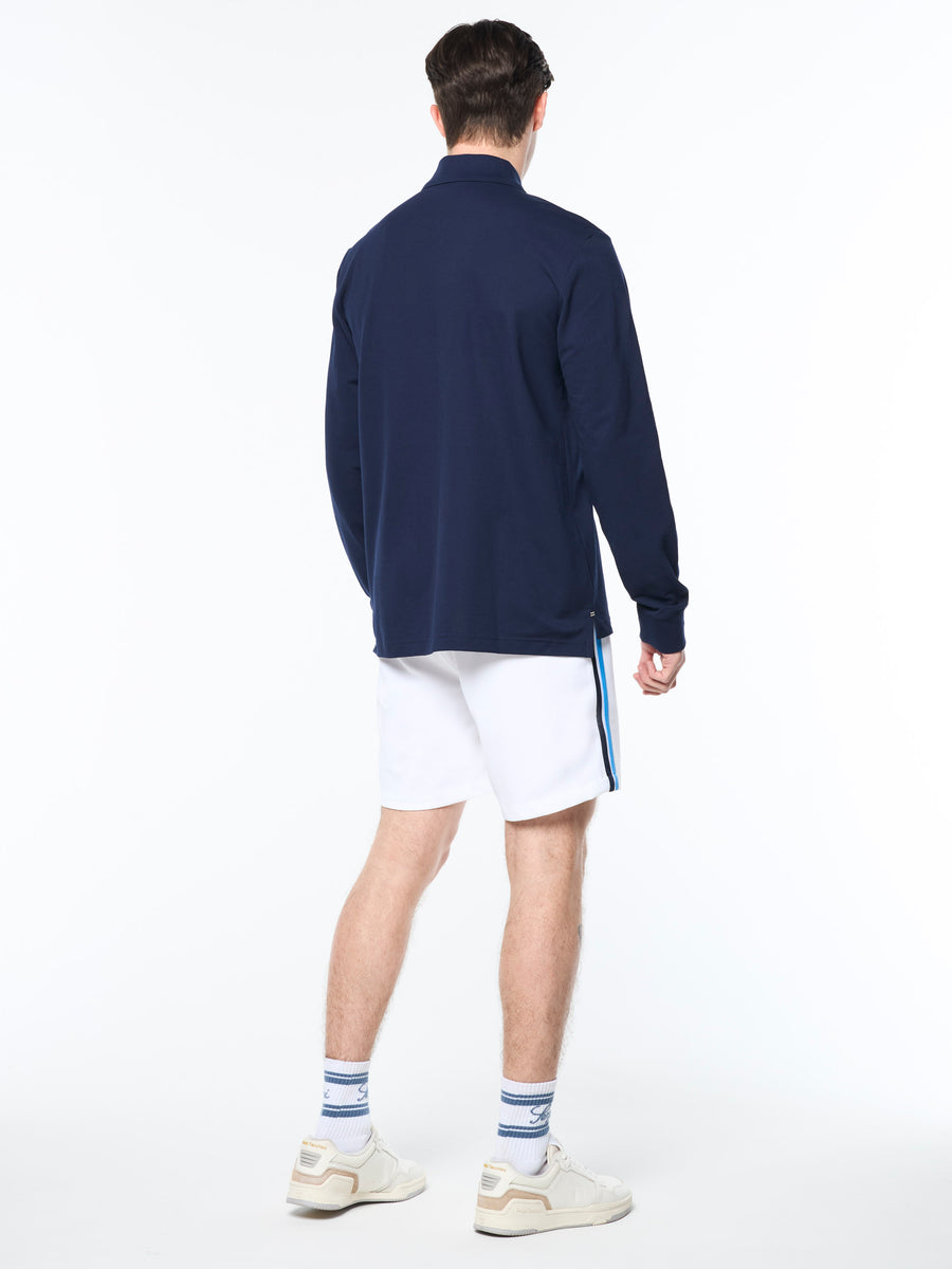 Inspired by timeless tennis design, the Dario Long Sleeve Polo is crafted from stretch cotton-blend piqué to keep you cool and comfortable from the court to the street. A seamless blend of vintage charm with a fresh twist, this premium long sleeve polo is finished with striped rib-knit detailing at the left chest pocket.Pair with the Dario Cargo Short for the full fit. (Sold separately)