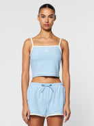 Cozy up in our super-comfy Florence Tank, crafted from incredibly soft terry fabric in a cropped cut that hits just above the waist. Topped with contrast spaghetti straps and an embroidered 'ST' monogram at the front, this luxe cami is perfect for lounging at home or wearing out.Pair with the Laura High Waist Short for the full fit. (Sold separately)