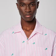Inspired by vintage cabana sets, the Granda Camp Shirt is made of lightweight striped cotton seersucker for comfort and breathability through warm weather. Topped with a casual camp collar, this relaxed resort button-up is complete with a spacious left chest pocket, custom woven label at the left hem, and an all-over tennis ball motif for a retro sportswear vibe.Pair with the Granda Short for the full fit. (Sold separately)