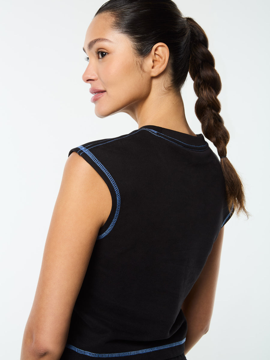 Inspired by timeless tennis elegance, our Greta Tank is crafted from incredibly soft cotton French terry to keep you comfy on the court and beyond. Designed to transition seamlessly from serving aces to lunch outings, this sporty tank features pop color stitching accents and a custom Sergio Tacchini woven label for extra style points.