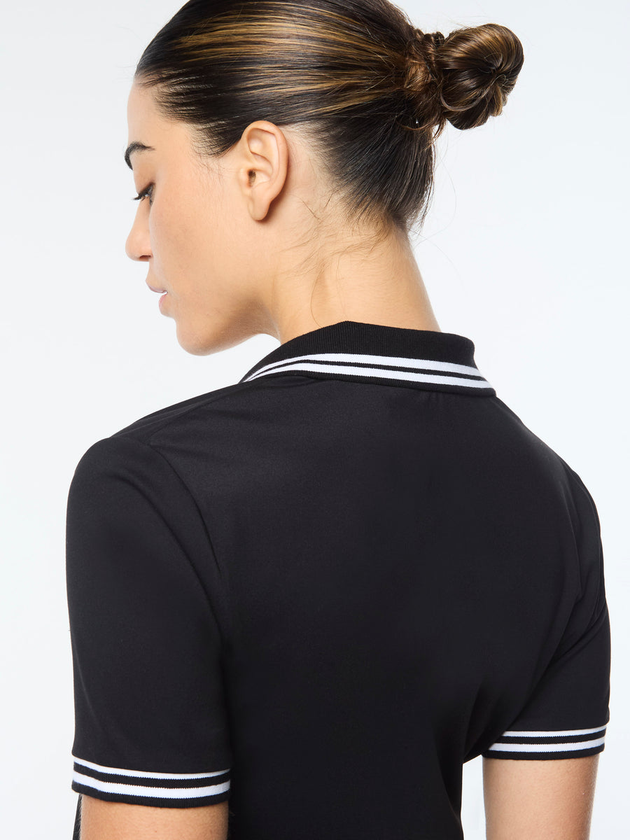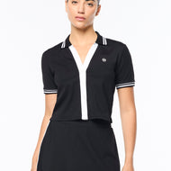 Elevate your game in our Idalia Cropped Polo. Crafted from performance double knit stretch fabric that's buttery-soft, moisture-wicking, and breathable, this athletic polo features a button-up front, contrast Y-placket, and tipping stripes at the rib-knit collar. A cropped cut hits right above the waist—perfect for styling over your favorite tennis skirt and high-rise leggings.Pair with the Idalia Skort for the full fit. (Sold separately)