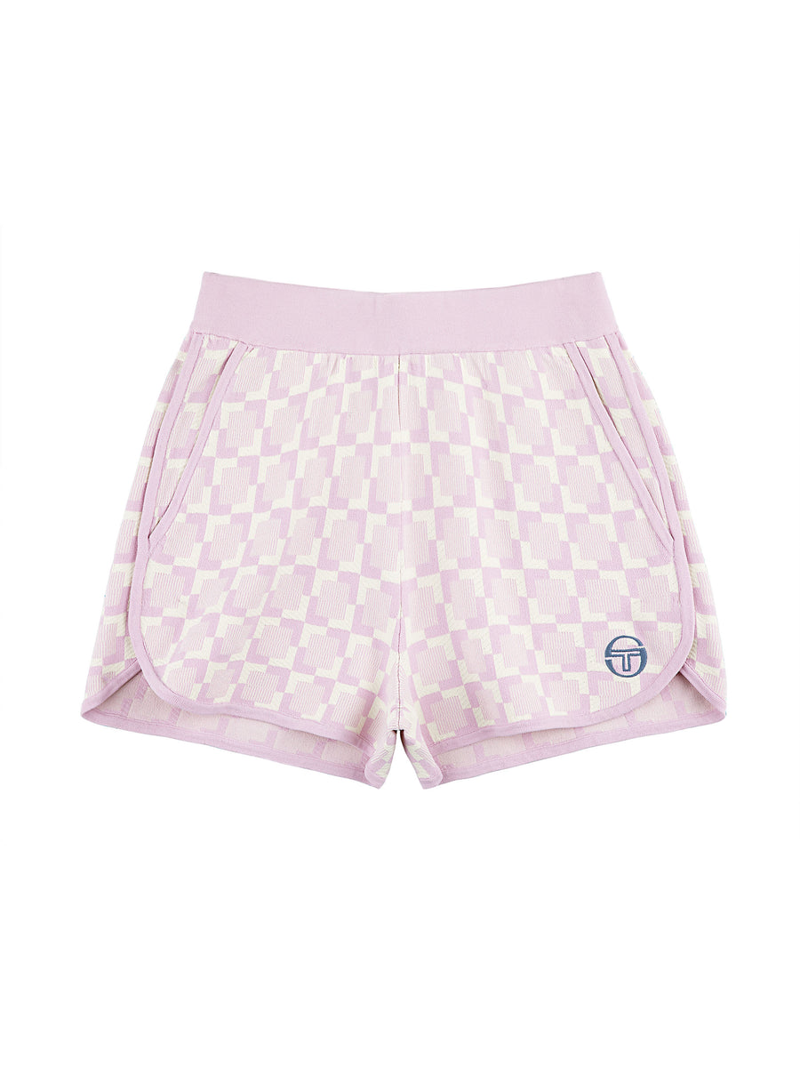 For those who demand style and quality without compromise. The Leila Short is expertly crafted from a luxurious matte viscose and elite fiber blend that's lightweight and breathable with a sturdy handfeel knit using an intricate birdseye-back jacquard technique, these elevated shorts feature an all-over geometric motif and contrast binding at the rounded dolphin hem for a retro vibe.Pair with the Leila Short Sleeve Track Jacket for the full fit. (Sold separately)