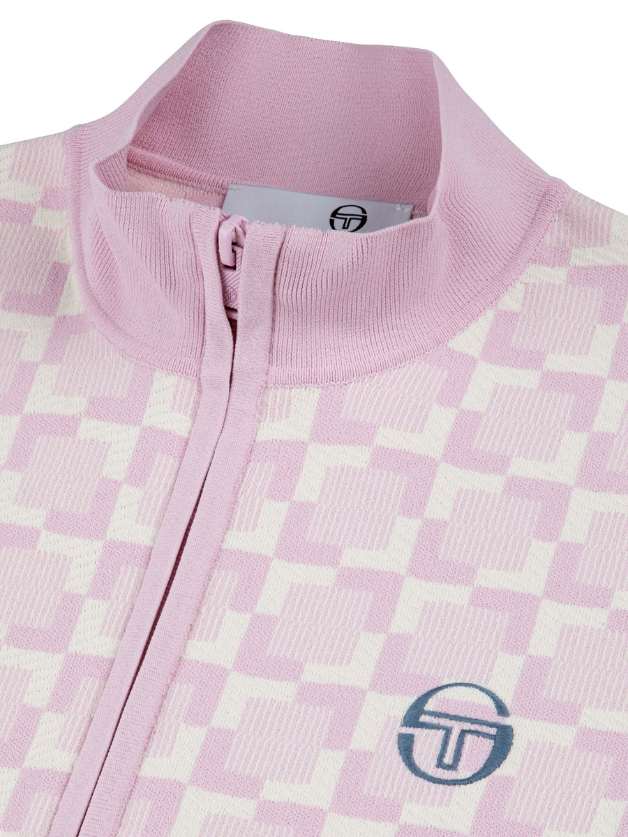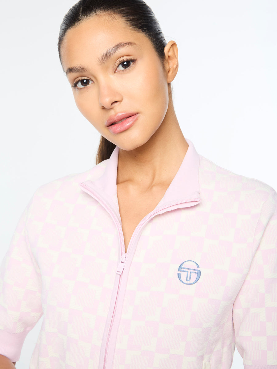 For those who demand style and quality without compromise.The Leila Short Sleeve Track Jacket is expertly crafted from a luxurious matte viscose and elite fiber blend that's lightweight and breathable with a sturdy handfeel. Knit using an intricate birdseye-back jacquard technique, this elevated zip-up features an all-over geometric motif and super-soft ribbed trims.Pair with the Leila Short for the full fit. (Sold separately)
