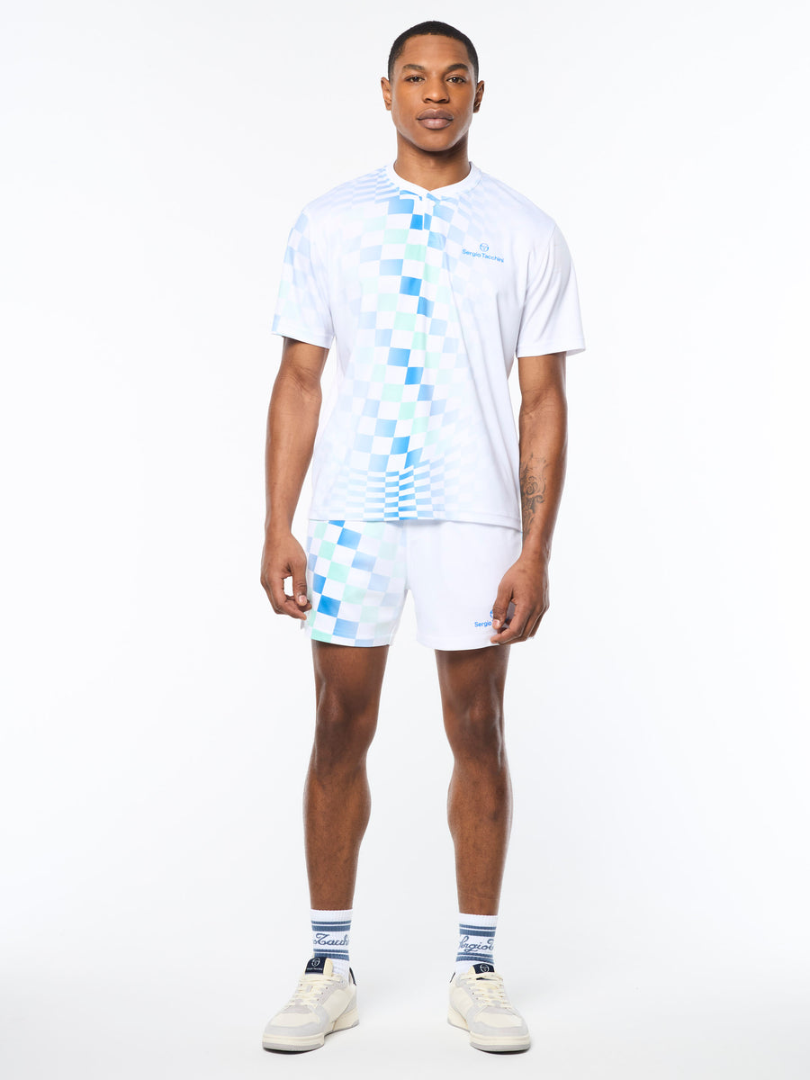 An on-court essential, the Luca T-Shirt is crafted from breathable piqué fabric with a snap-button vent placket to keep you cool and confident when practice heats up. Featuring an all-over checkerboard gradient for a retro vibe, this performance tee ensures you look and feel your best whether you're serving an ace or rallying with friends.Pair with the Luca Piqué Printed Short for the full fit. (Sold separately)