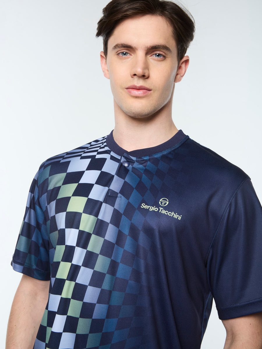 An on-court essential, the Luca T-Shirt is crafted from breathable piqué fabric with a snap-button vent placket to keep you cool and confident when practice heats up. Featuring an all-over checkerboard gradient for a retro vibe, this performance tee ensures you look and feel your best whether you're serving an ace or rallying with friends.Pair with the Luca Piqué Printed Short for the full fit. (Sold separately)