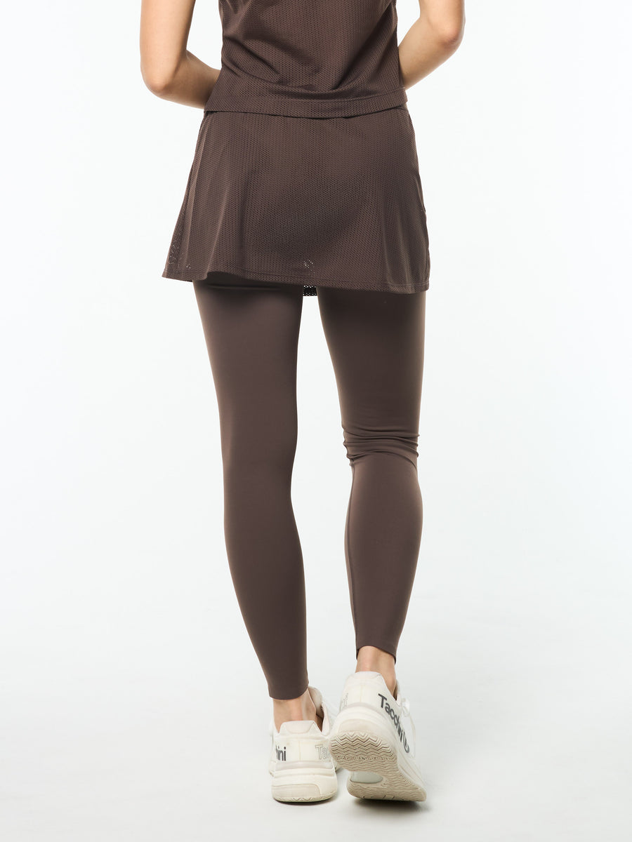 A two-in-one fit that's built to move. The Milana Legging combines high-performance design with fashion-forward details—pairing a breathable mesh skirt over smooth and stretchy contour leggings. An adjustable bungee cinch at the hem creates custom gathering textures, while a wide waistband provides all-day comfort. Sporty, sleek, and made to stand out—on or off the court.