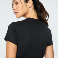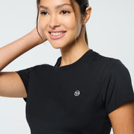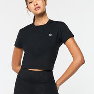 Crafted from buttery-soft, 4-way stretch fabric with moisture wicking properties, our Mirano Fitted Crop Top is the perfect fit for workouts and casual everyday wear. Featuring our iconic 'ST' monogram logo at the chest, this form-fit tee is cut cropped for easy styling over your favorite exercise shorts and leggings.