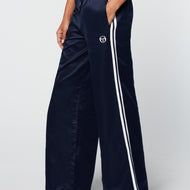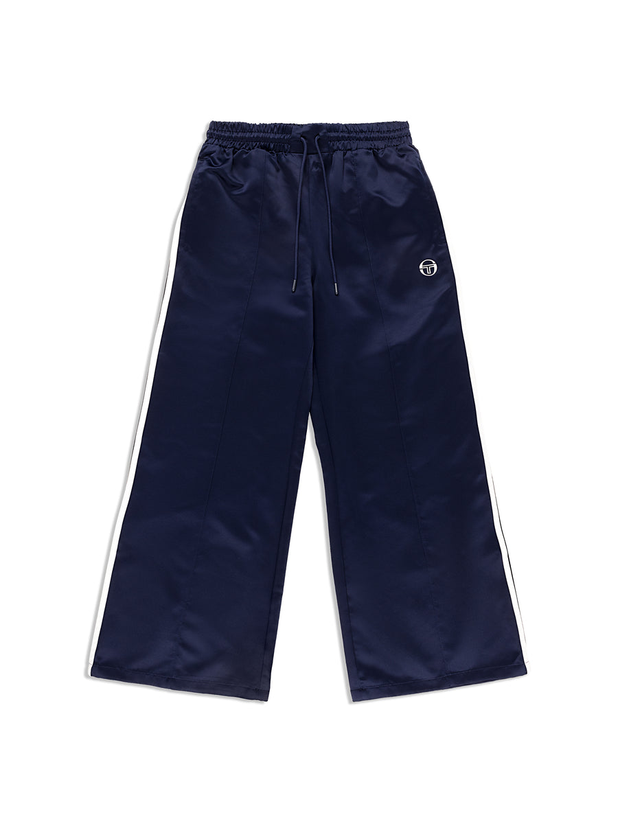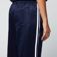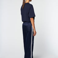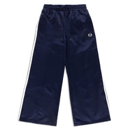 Inspired by vintage sportswear, the Miss Stella Pants are crafted from premium poly satin for a smooth and luxurious finish. Featuring sporty taping stripes down the legs, these elegantwide-cut track pants are complete with spacious pockets and our iconic 'ST' monogram embroidered at the left thigh.Pair with the Miss Angela Bomber Jacket for the full fit. (Sold separately)