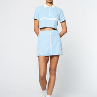 A new spin on retro sportswear, our Miss Supermac Skirt is crafted from sturdy twill in a tailored silhouette for on and off court style. Cut with a full-zip closure featuring a custom 'ST' monogram zipper pull, this luxe tennis skirt is complete with double stripe taping accents and an embroidered logo at the hem.Pair with the Miss Supermac Polo for the full fit. (Sold separately)