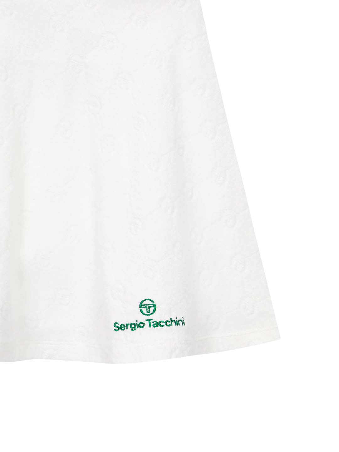 Our Terry Flare Skirt is crafted from super-soft terry fabric featuring an all-over jacquard 'ST' monogram motif. Inspired by luxe resort leisurewear, this elevated skirt is complete with supportive undershorts and an embroidered Sergio Tacchini logo at the hem.Pair with the Terry Jacquard Cropped T-Shirt for the full fit. (Sold separately)