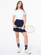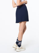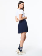 Our Nota Knit Skirt redefines casual luxury with a refined combination of comfort and craft. Spun from high-quality Athena yarn—an eco-conscious viscose blend prized for its breathability, moisture-wicking performance, and soft hand feel—this premium skirt is knit in an accordion pleat silhouette for beautiful movement and drape. Jacquard striping accents and our iconic 'ST' monogram at the rib-knit waistband finish off the fit with first-class sophistication.