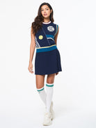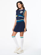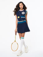 The Nota Knit Vest redefines casual luxury with a refined combination of comfort and craft. Spun from high-quality Athena yarn—an eco-conscious viscose blend prized for its breathability, moisture-wicking performance, and soft hand feel—this premium top is constructed using an artful birdseye-back knit that drapes effortlessly while maintaining structure. Finished with custom embroidered tennis artwork, stripe accents, and color-block hits, the Nota unites timeless sport with first-class sophistication.