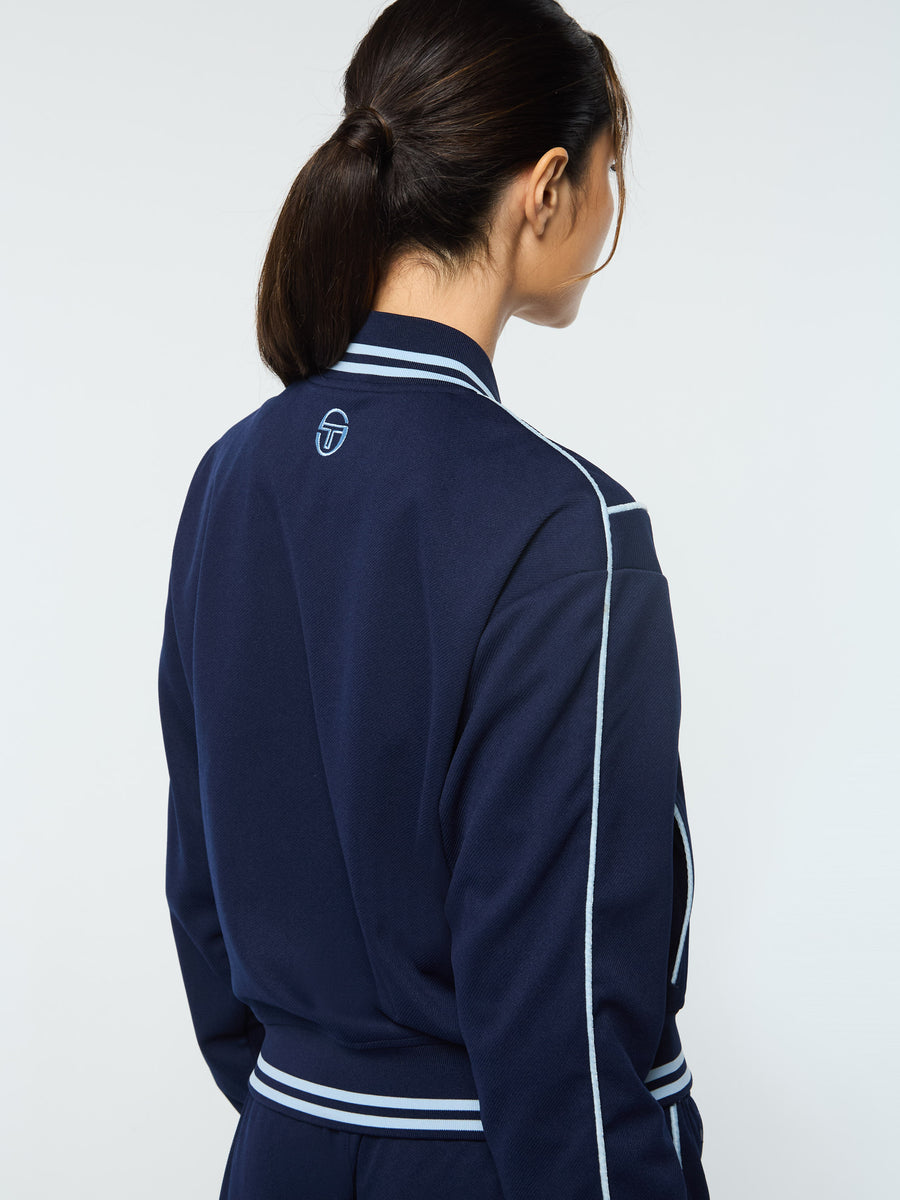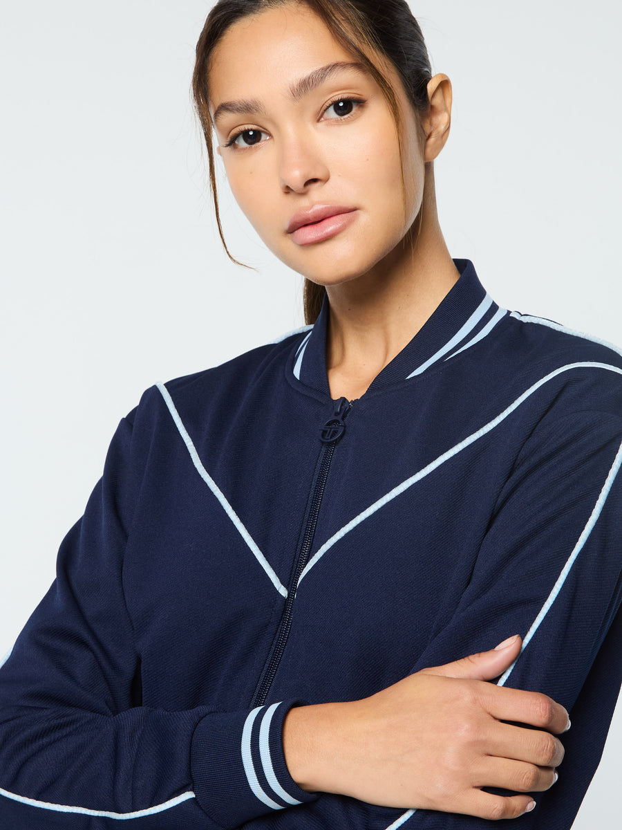 A fresh spin on elevated athleisurewear, the Pavia Twill Bomber Jacket is crafted from performance twill with contrast double stripes at the soft rib-knit trims. Featuring velour piping accents in a chevron shape at the chest and down the sleeves, this sporty full-zip bomber is finished with spacious handwarmer pockets and an embroidered 'ST' monogram at the back.Pair with the Pavia Twill Track Pant for the full fit. (Sold separately)