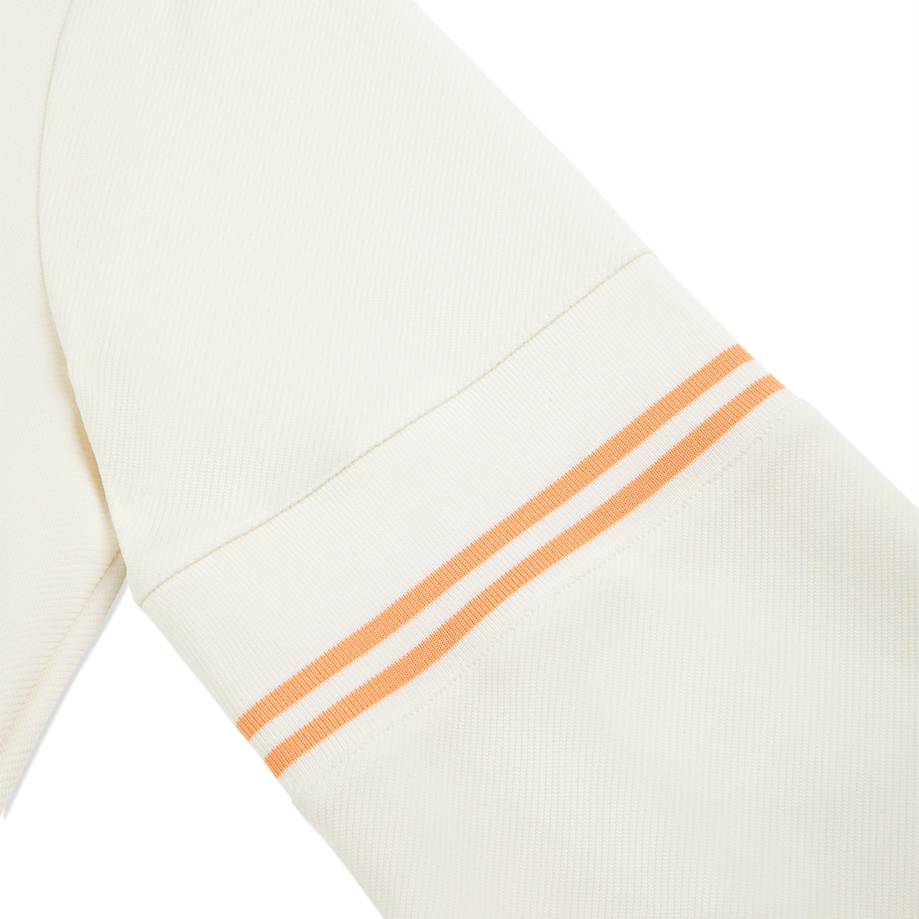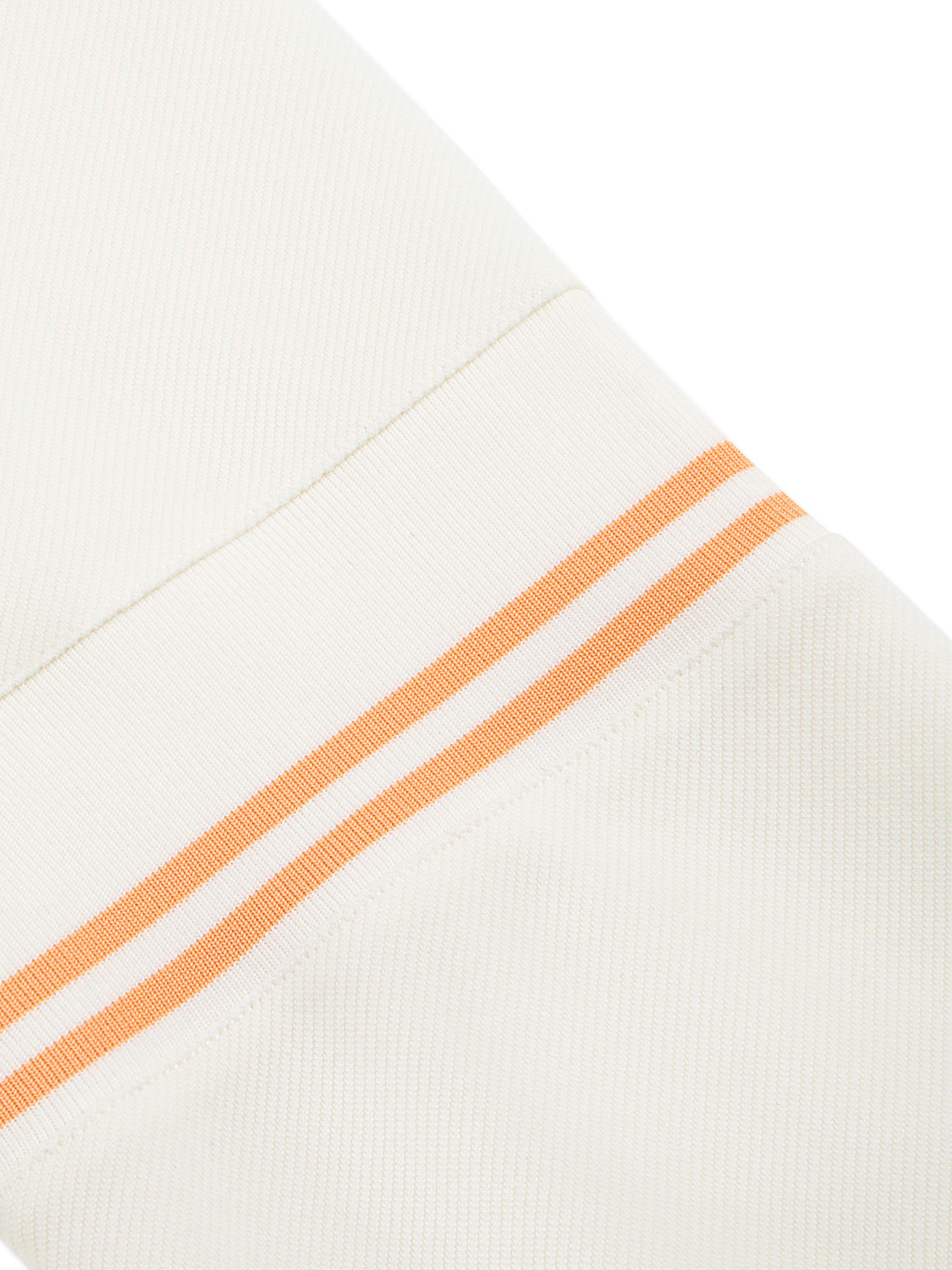 - Rib-knit panel inserts w/ double stripe at mid sleeve