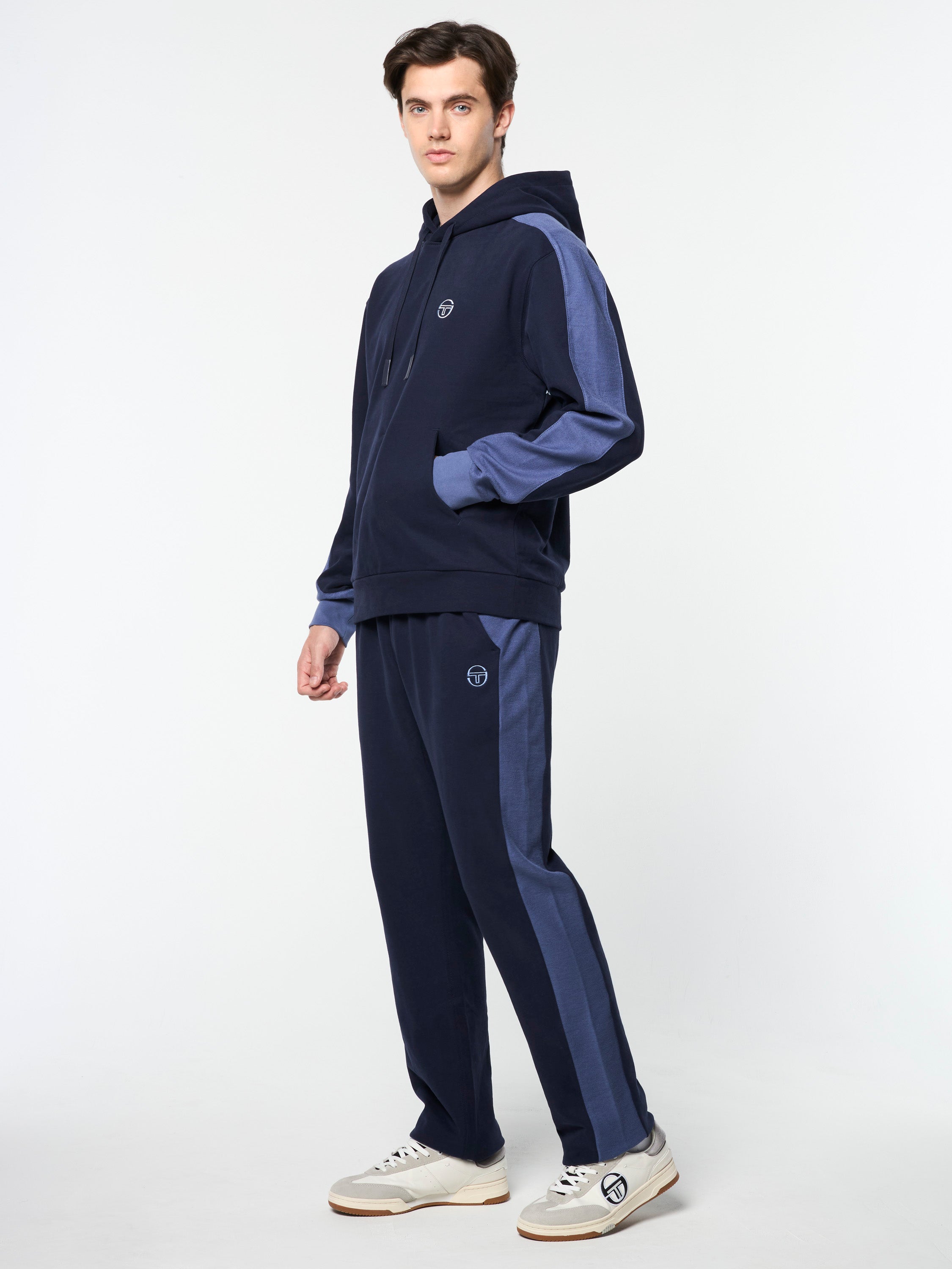 A clean and classic wardrobe staple, the Remo Hoodie is crafted from super-soft, heavyweight French terry cotton for maximum comfort with an elevated vibe. Featuring contrast color-block paneling at the sleeves, this premium hoodie is finished with high-density silicone Sergio Tacchini artwork at the back and an interior kangaroo pocket for a clean finish.