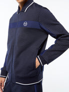 Classic track style gets a refined refresh with the Rete Track Jacket. Crafted from a comfortable jacquard knit blend with stretch, it features allover check patterning that adds a sharp, elevated look while staying rooted in Sergio Tacchini's sport heritage. Designed with a full-zip front and clean finishing, it's completed with signature Tacchini branding for an unmistakable touch.