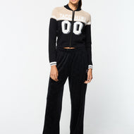 - Textured yarn Intarsia graphics at front & back