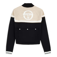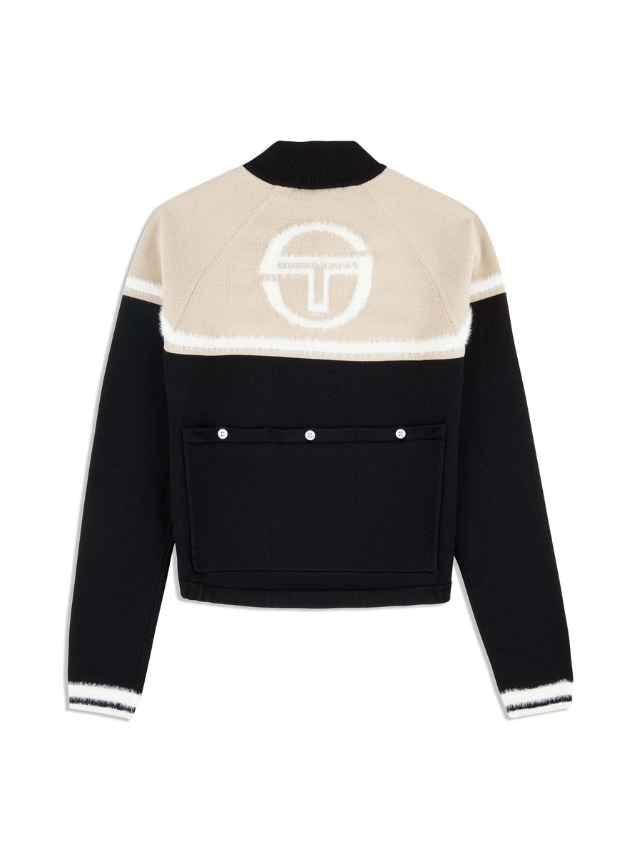 Designed with exquisite attention to detail, the Ruota Cycling Jersey is crafted from premium birds-eye knit fabric that's lightweight, breathable, and exceptionally soft to the touch. Featuring custom Intarsia knit artwork and striping details in fuzzy yarn for a tactile finish, this color-blocked zip-up jersey is finished with classic cycling pockets at the back.