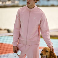 The epitome of effortless chic, our Sandro Track Jacket is crafted from soft double-knit fabric that's comfortable, durable, and perfect for everyday wear. Topped with a snap-button mock neck, this premium full-zip track jacket is finished with roping outline details at the welt handwarmer pockets.Pair with the Sandro Track Pant for the full fit. (Sold separately)