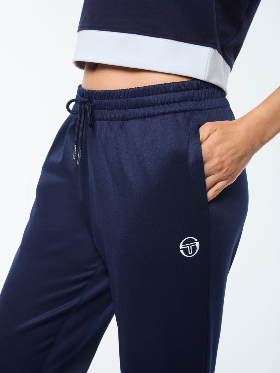 Set sail in style with our premium Sienna Track Pant, crafted from comfortable double-knit fabric that's soft against the skin, breathable, and perfect for everyday wear. Topped with a custom-fit elastic waistband, these vacation-ready track pants are complete with stripe accents at the cuffs for a nautical vibe.Pair with the Sienna Track Jacket for the full fit. (Sold separately)