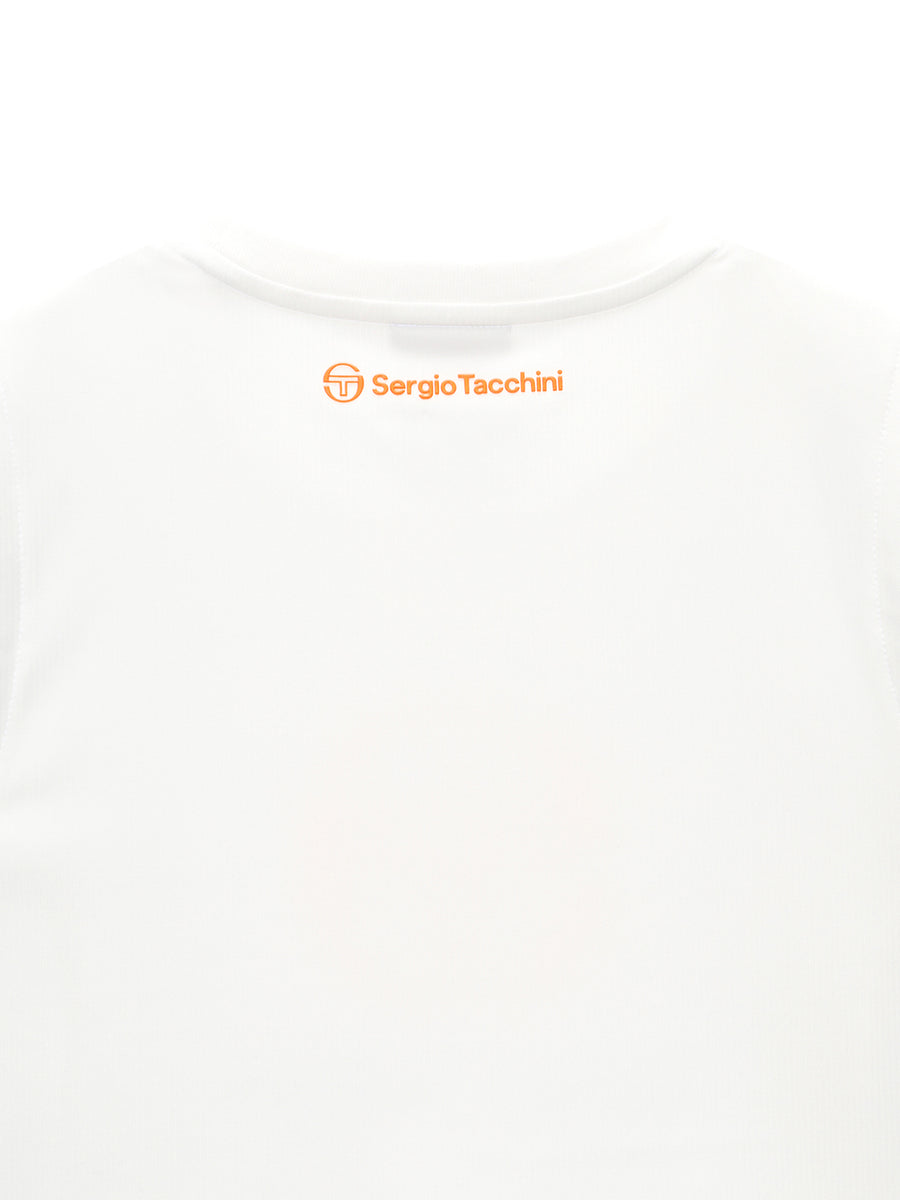 Carefree and comfy, our Women's Sleeveless T-Shirt is crafted from lightweight stretch rib with moisture-wicking & quick-dry properties to keep you cool and moving freely through your day. The perfect fit for any occasion, this elevated top features a bold two-tone Tacchini logo at the front.