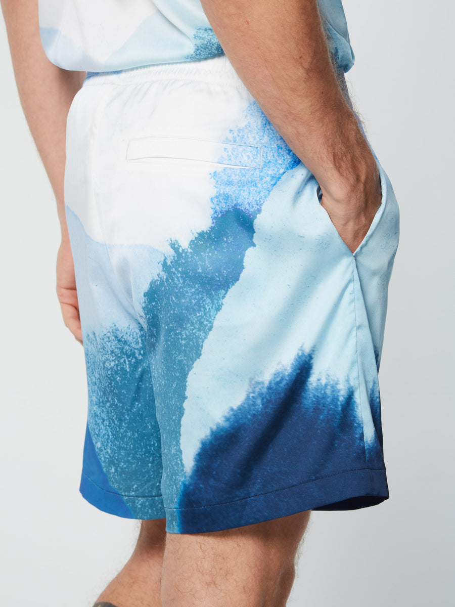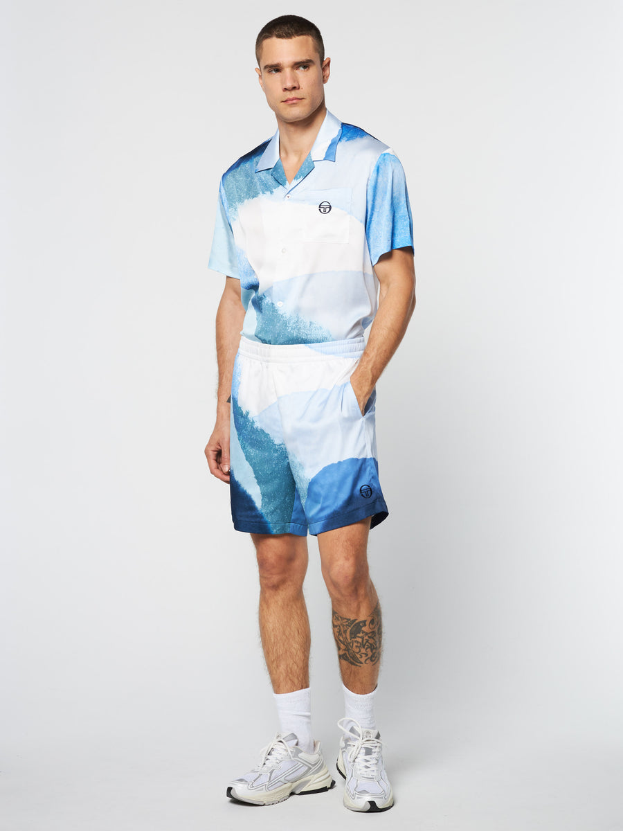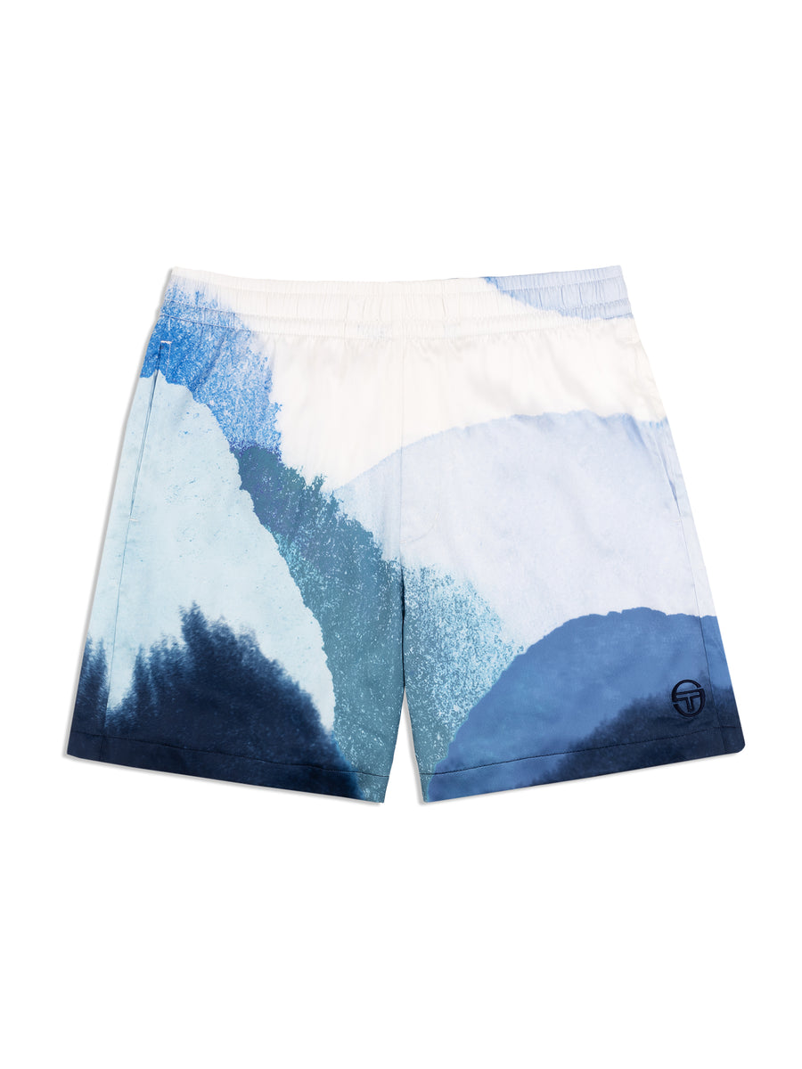 An homage to retro luxury resort wear, the Spiaggia Cabana Short is crafted from premium Crepe de Chine satin and features an all-over abstract watercolor print. Topped with a comfortable elastic waistband, these elevated shorts are complete with spacious pockets and our iconic 'ST' monogram embroidered at the hem.Pair with the Spiaggia Cabana Shirt for the full fit. (Sold separately)