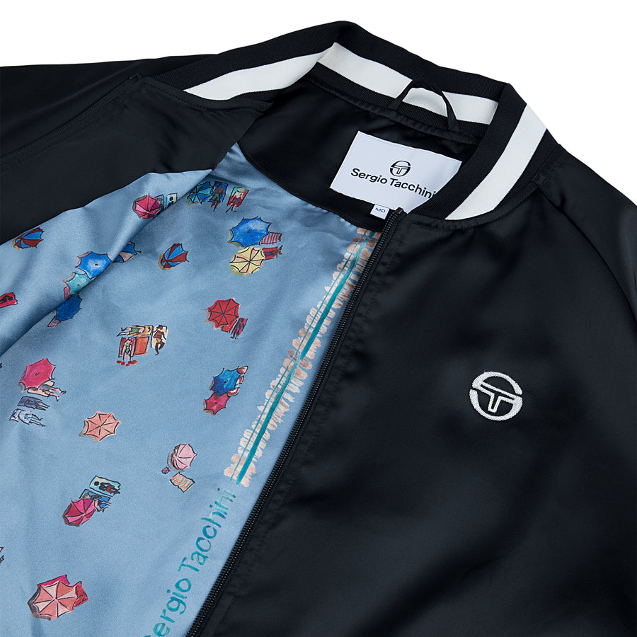 The Tosca Varsity Jacket is crafted from poly satin that's smooth to the touch with a subtle stretch to keep you looking good and feeling great wherever you're off to. Featuring our seasonal Mediterranean beach scene 'Tosca' print at the interior lining, this elevated full-zip varsity jacket is complete with chainstitch embroidered logos at the chest and back.