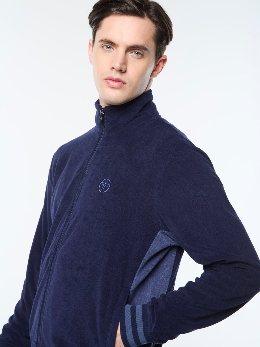 Upgrade your warm-weather wardrobe with the Vitus Track Jacket, crafted from luxurious terry towel fabric for contemporary comfort with a touch of breezy nonchalance. Cut with a full-zip front for easy layering, this premium track jacket is complete with color-block paneling and tipping stripes as a nod to retro leisurewear.Pair with the Vitus Track Pant for the full fit. (Sold separately)