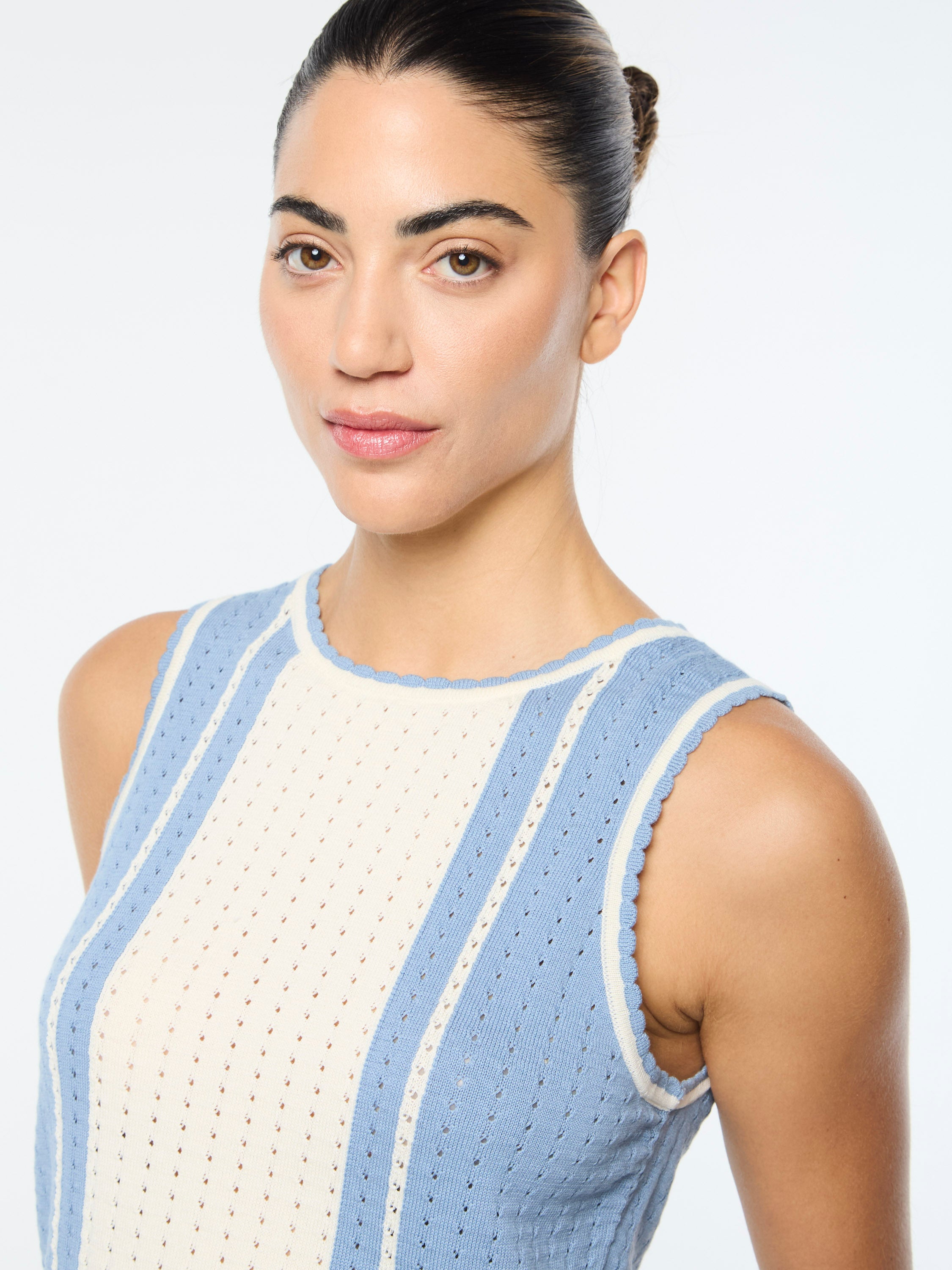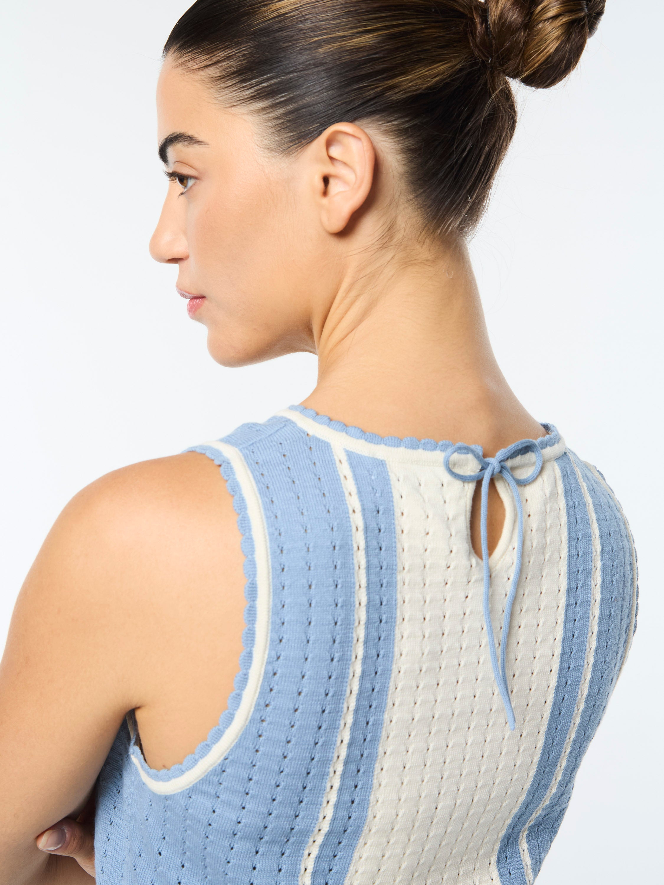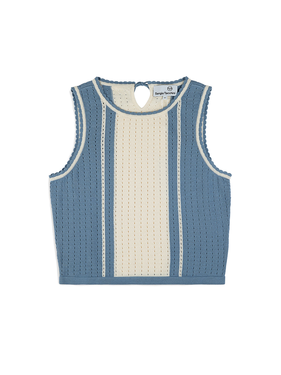 A luxurious take on vintage resort leisurewear, the Zola Knit Top is crafted from premium high-twist cotton yarn using an airy open pointelle-knit technique that's lightweight, breathable, and exceptionally soft to the touch. Perfect for summertime vacations and beach outings, this elevated top features striping accents at the body and scalloped edge detailing at the trims.Pair with the Zola Knit Short for the full fit. (Sold separately)