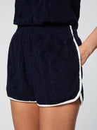 Crafted from incredibly soft and absorbent terry, our premium Zona Short features an all-over debossed 'ST' monogram motif as a nod to vintage luxury resort wear. Topped with a super-comfy elastic waist, these wear-everywhere shorts are complete with spacious pockets, contrast binding accents, and a retro rounded dolphin hem.